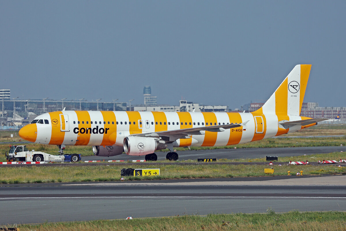 Condor, D-AICU, Airbus A320-214, msn: 3767, "Yellow Sunshine", 12.August 2025, FRA Frankfurt, Germany.