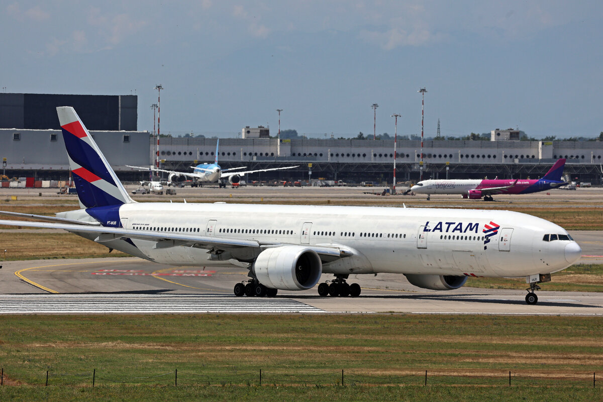 LATAM Brasil, PT-MUB, Boeing B777-32WER, msn: 37665/733, 03.Juli 2025, MXP Milano Malpensa, Italy.