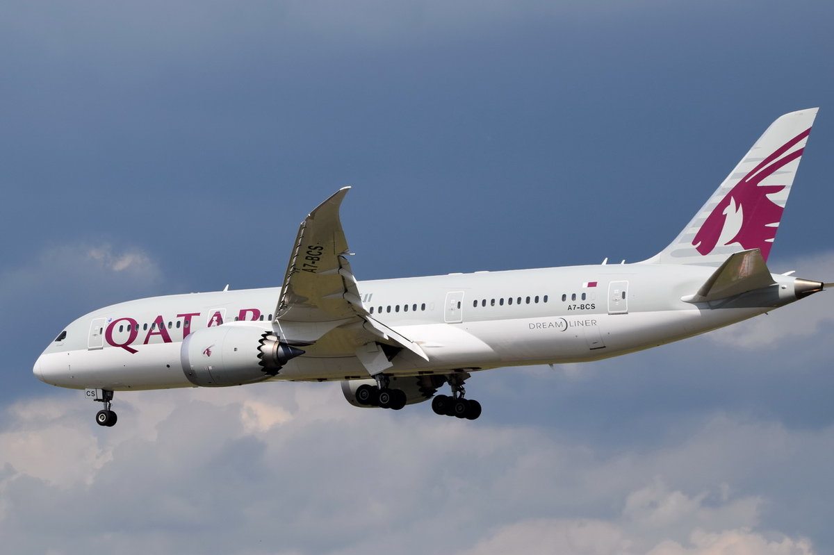 A7-BCS Qatar Airways Boeing 787-8 Dreamliner beim Landeanflug am 06.08.2016 in Frankfurt