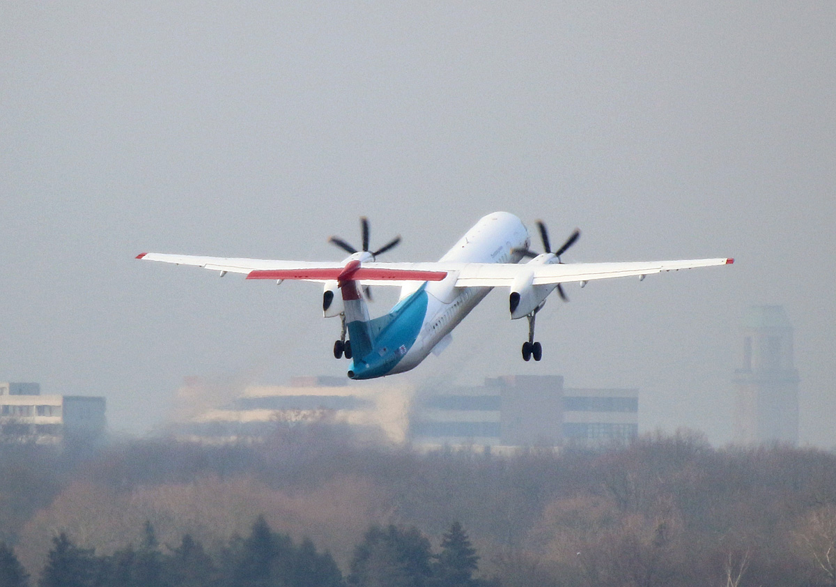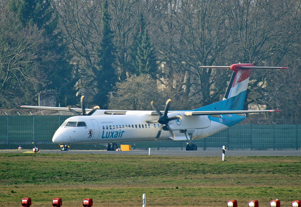 LX-LGG, Bombardier DHC-8-400 von Luxair, auf dem Rollfeld vom Flughafen in Luxemburg. 05.08.2020