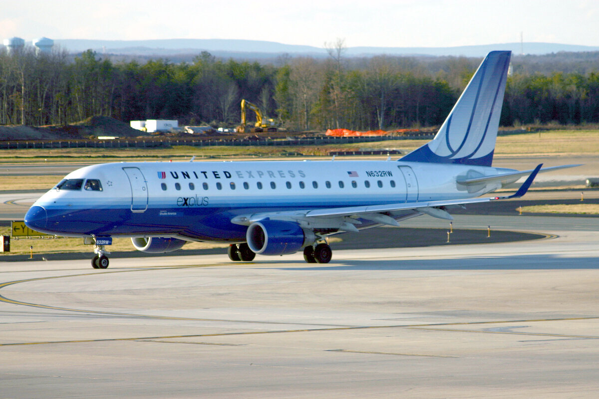 HOP!, F-HBXE Embraer ERJ-170LR, steht nahe der Rollbahn auf dem Flughafen Findel in Luxemburg. 03.03.2025