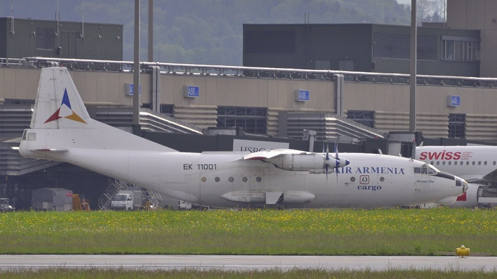 Air Armenia Cargo Antonov AN-12BK taxelt zur SR Technics am Flughafen Zürich ZRH gesehen am 8.05.2009
