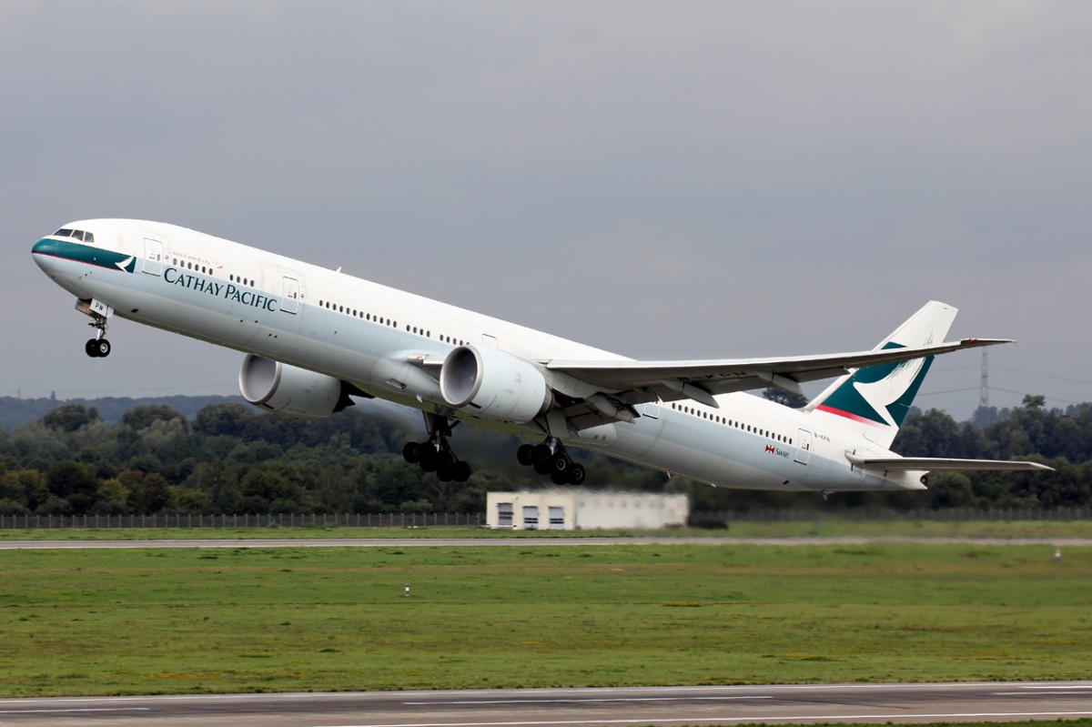 Cathay Pacific B-KPN beim Start in Düsseldorf 5.9.2015