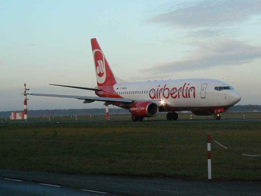 Air Berlin B 737-76Q D-ABAA am frühen Morgen des 21.11.2009 auf dem Flughafen Berlin-Tegel