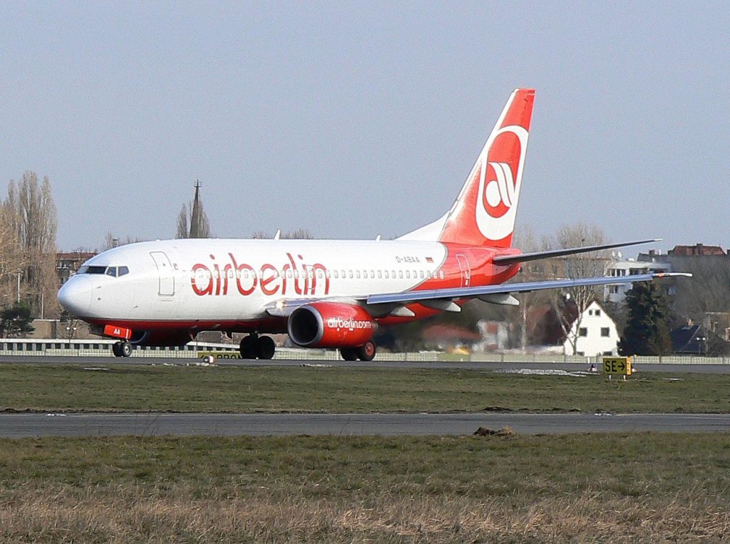 Air Berlin B 737-76Q D-ABAA am 02.04.2010 bei der Ankunft in Berlin-Tegel