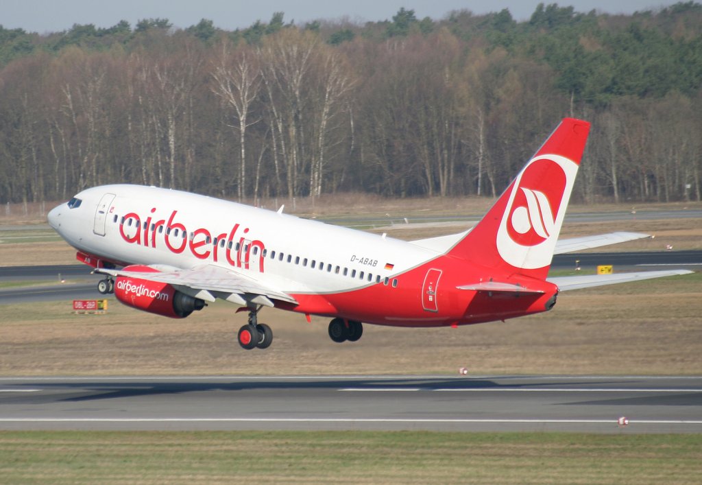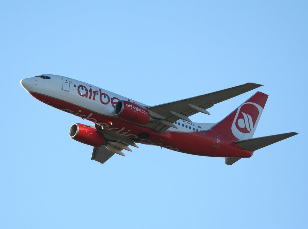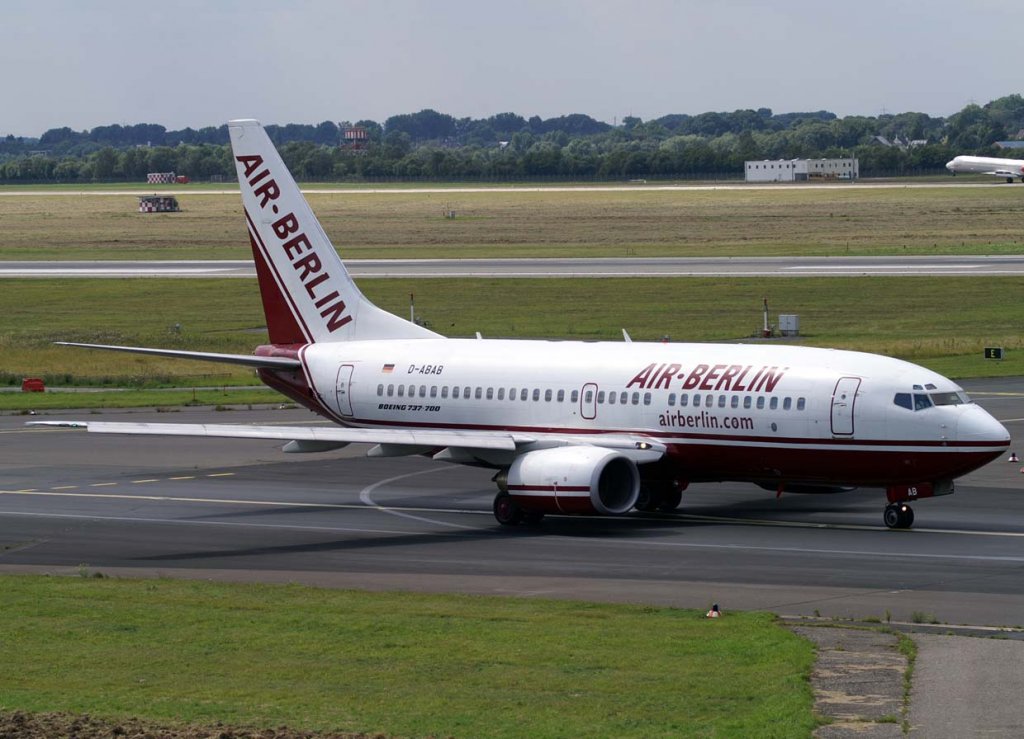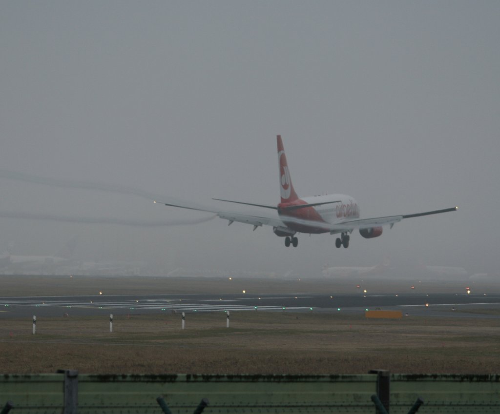 Air Berlin 737 D-ABAB in Berlin TXL am 23.02.2008 auf dem Weg zur Rwy 26L - diese Aufnahme entstand am "Spotterhügel". Diese Fotoposition soll aber ab dem Sommer/Herbst 2008 durch eine 6-8m hohe Lärmschutzwand geschlossen werden Hans-Jürgen Mind