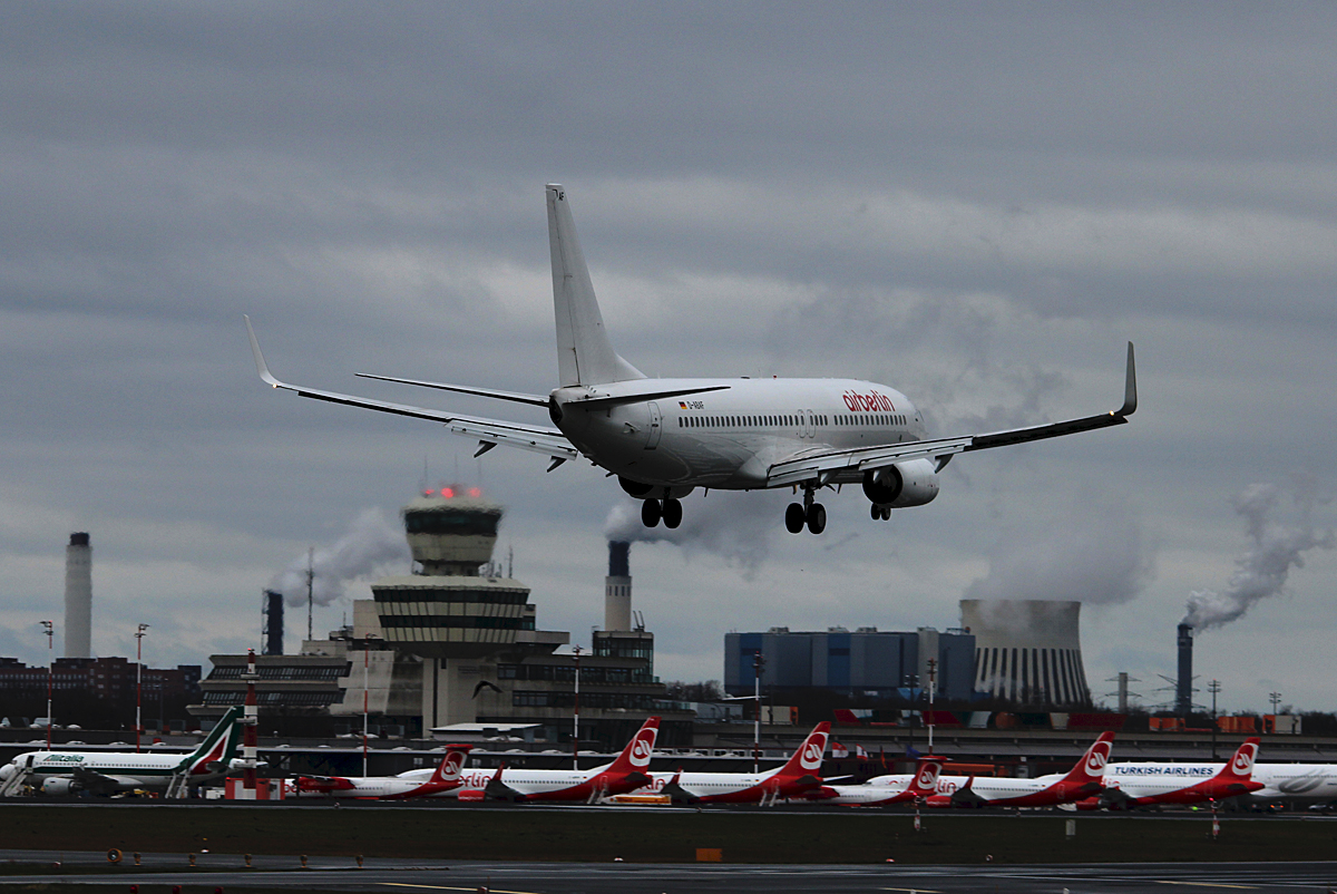 Air Berlin B 737-86J D-ABAF bei der Landung in Berlin-Tegel am 05.02.2016