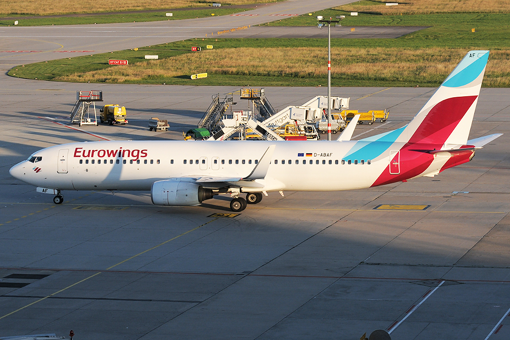 Eine Boeing 737-800 (D-ABAF | 30878) der Eurowings (ehem. TUIfly, ehem. Niki) steht im Flughafen Leipzig/Halle. Aufgenommen während einer Besichtigungstour mit dem Bus. Die Aufnahme stammt von Theodor Wolf und wurde zur Veröffentlichung freigegeben. [© Theodor Wolf | August 2017]