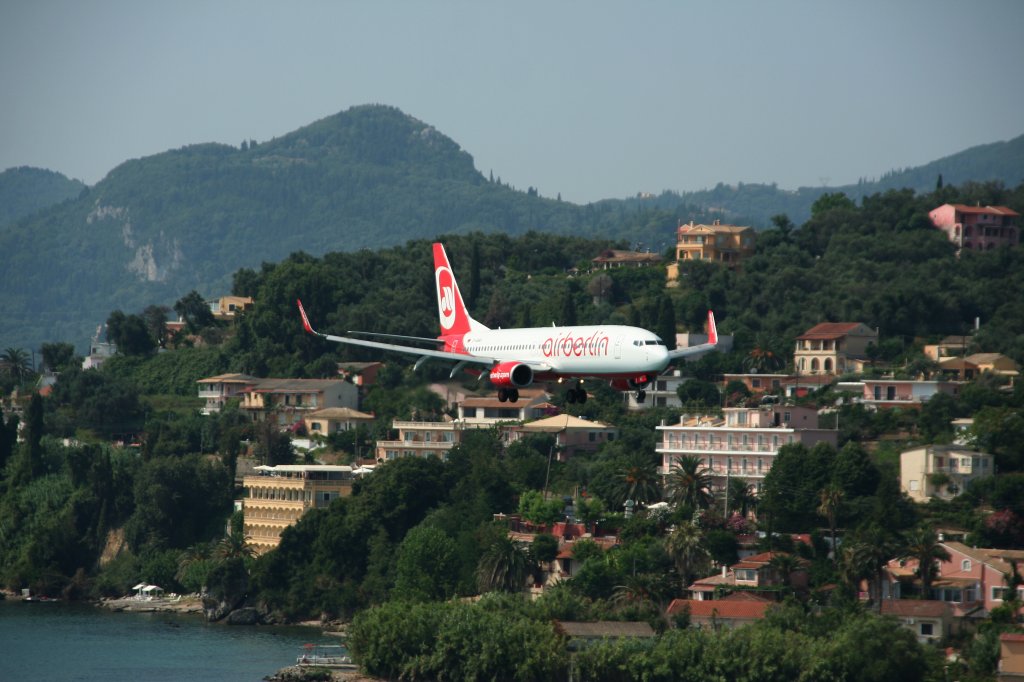 Air Berlin B 737-86J(WL) D-ABBH im Anflug vor der einmaligen Kulisse von Korfu am 17.07.2010