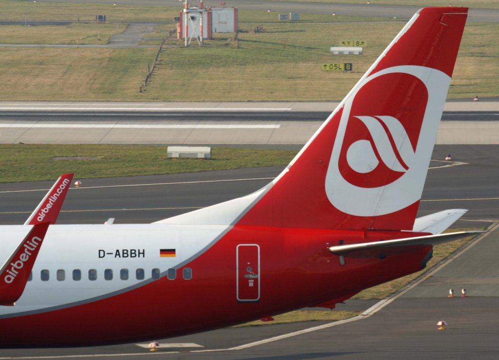Air Berlin, D-ABBH, Boeing 737-800 WL (neue AB-Lackierung)(Seitenleitwerk/Tail), 04.03.2011, DUS-EDDL, Düsseldorf, Germany