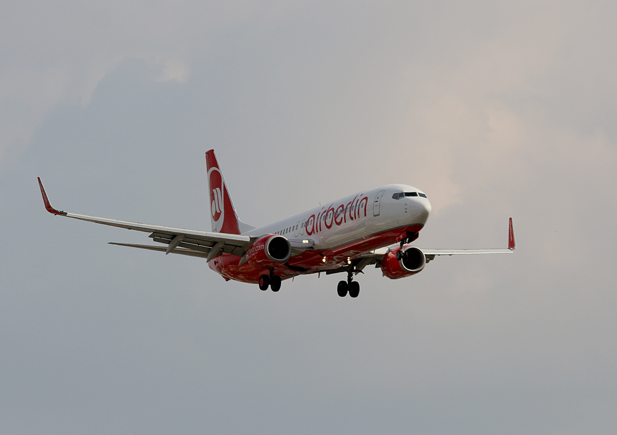Air Berlin B 737-8BK D-ABBK bei der Landung in Berlin-Tegel am 08.08.2014