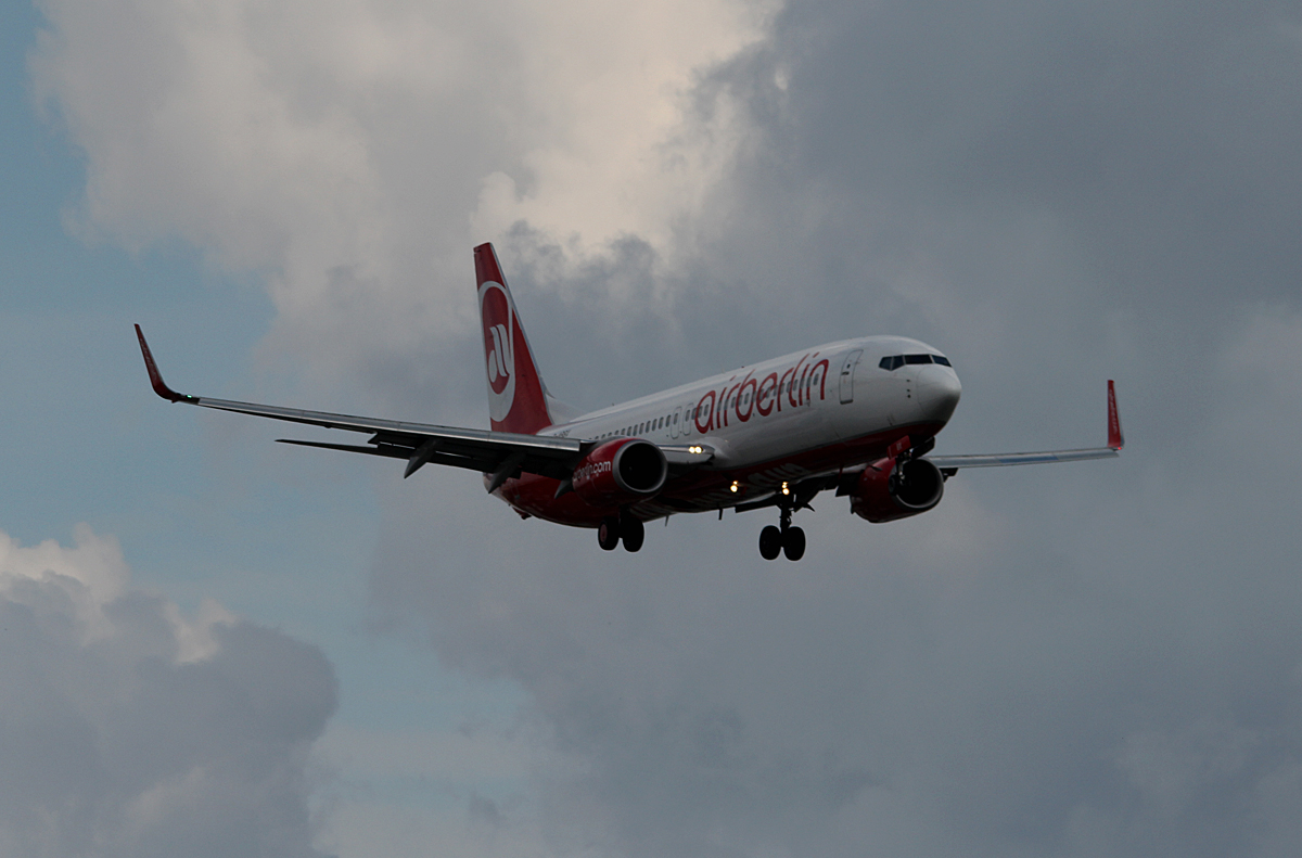 Air Berlin B 737-808 D-ABBX bei der Landung in Berlin-Tegel am 09.05.2014