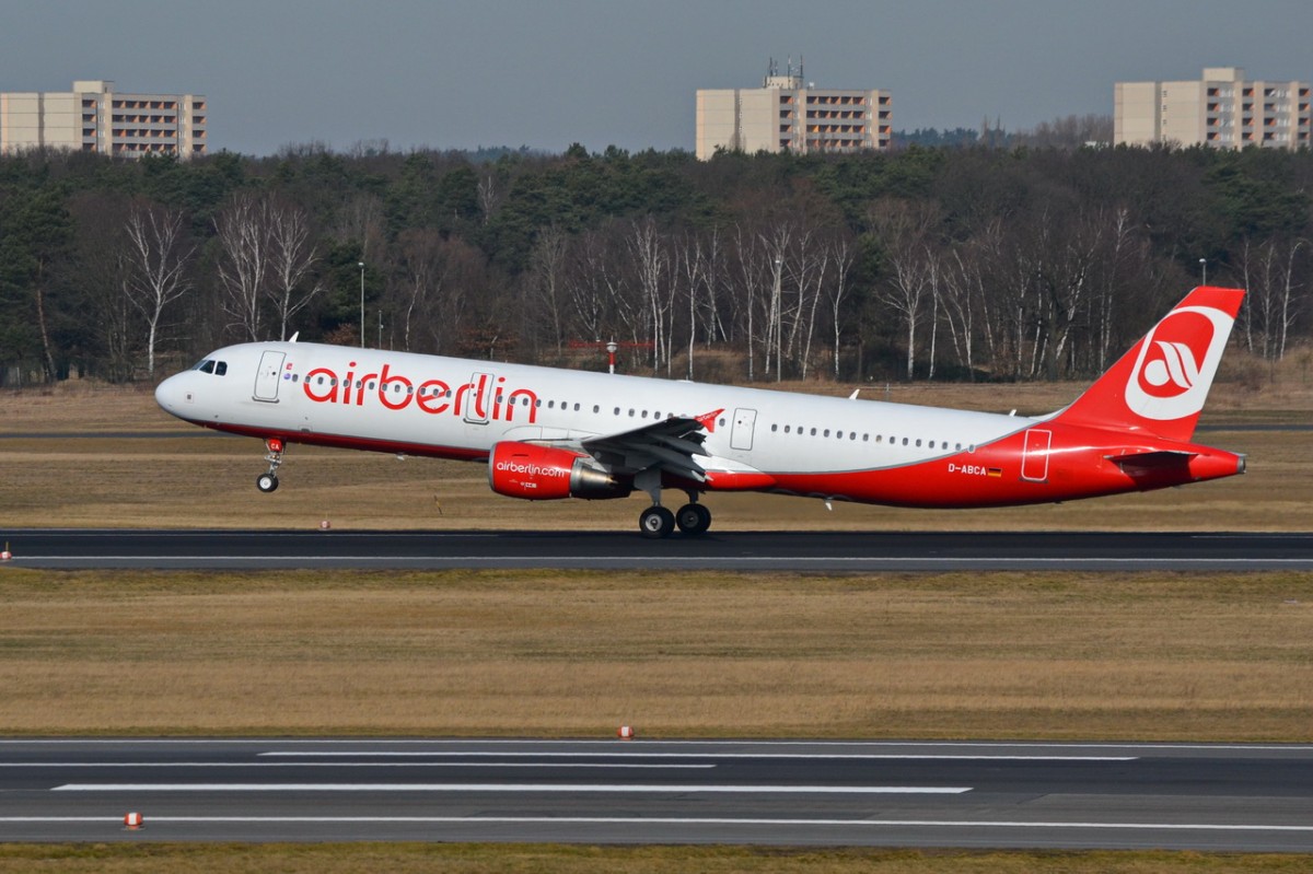 Air Berlin A 321-211 D-ABCA kurz vor dem Start in Berlin-Tegel am 11.01.2014