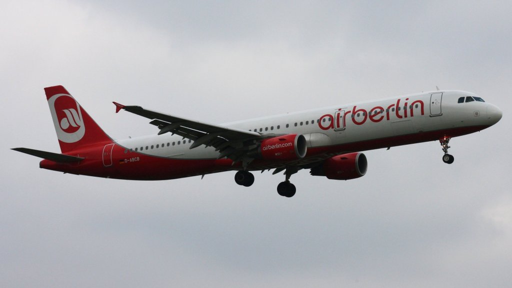 Ein Airbus A321 von Airberlin mit der Kennung "D-ABCB" im Anflug auf den Flughafen Stuttgart(STR). Aufgenommen am 15.08.13