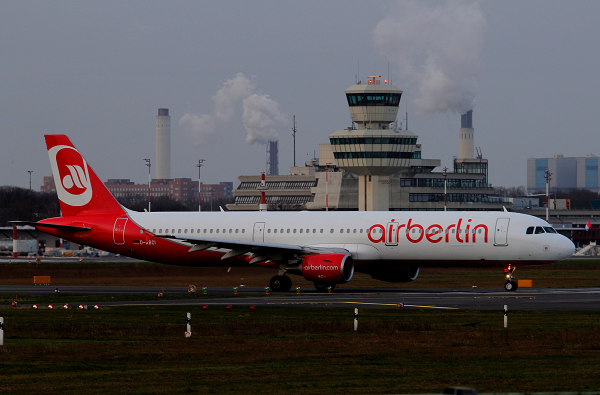 Air Berlin A 321-211 D-ABCI kurz vor dem Start in Berlin-Tegel am 03.01.2015
