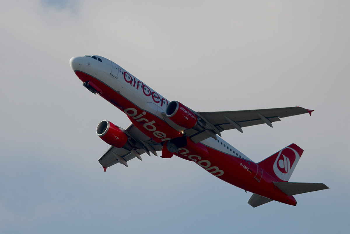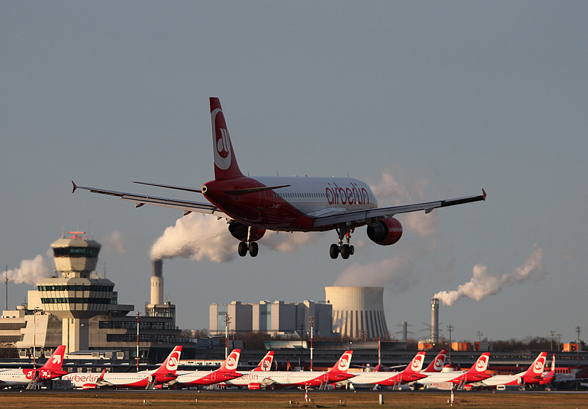 Air Berlin A 320-214 D-ABFC bei der Landung in Berlin-Tegel am 08.02.2014