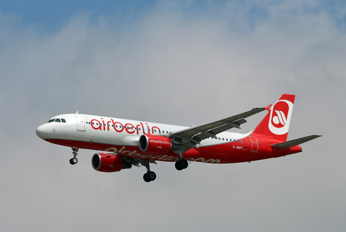 Air Berlin A 320-214 D-ABFF bei der Landung in Berlin-Tegel am 08.08.2014