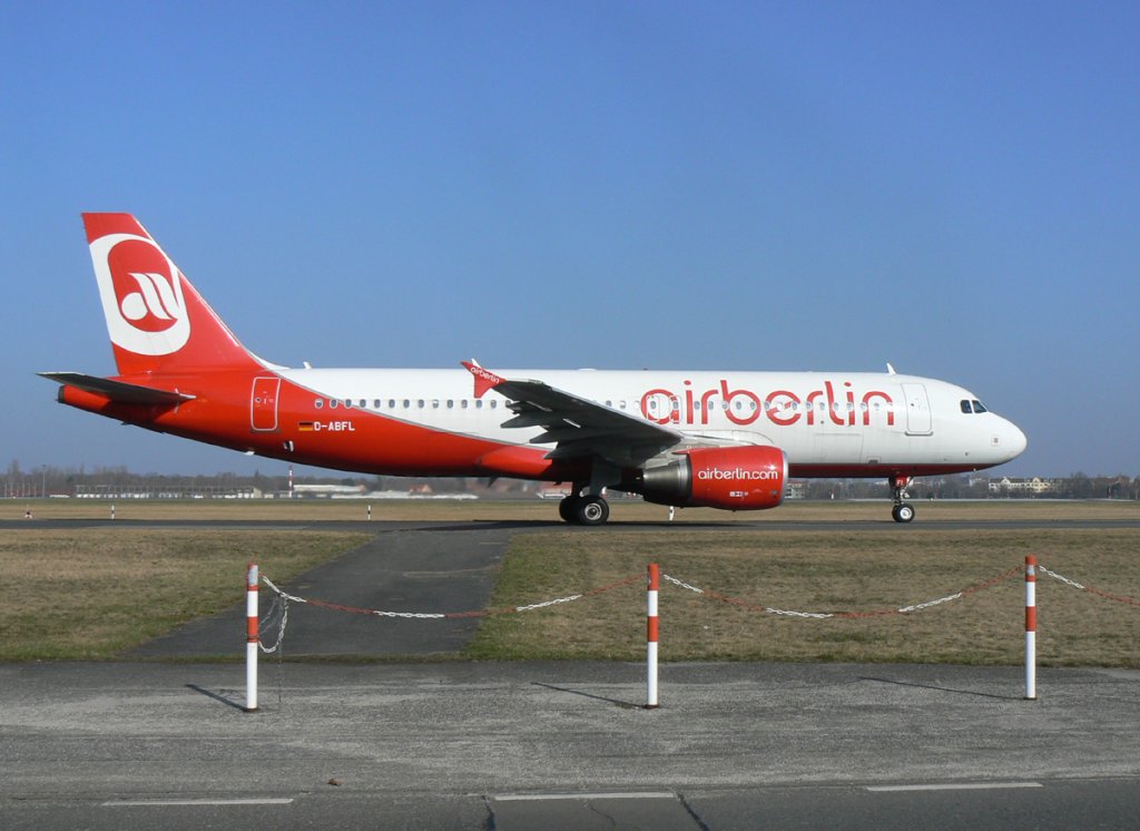 Auf diesem Foto ist der Air Berlin-Airbus A320-200 D-ABFL beim Touch-down auf der Stuttgarter Landebahn 07 am 12. Februar 2011 zu sehen Matthias Weber