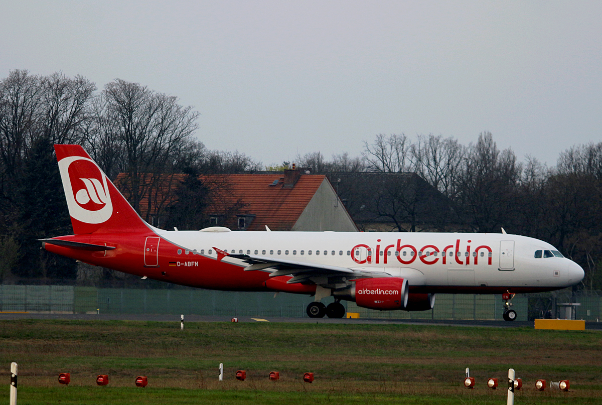 Air Berlin A 320-214 D-ABFN kurz vor dem Start in Berlin-Tegel am 19.12.2015