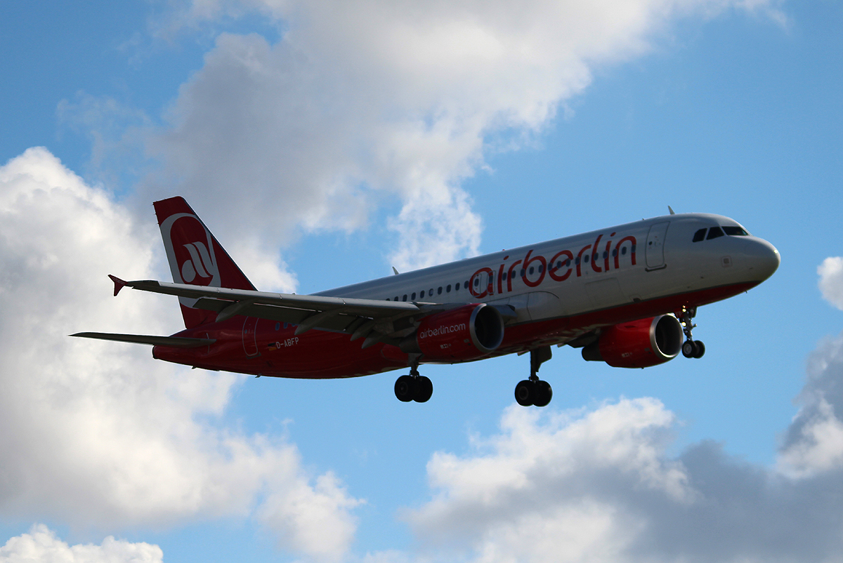 Air Berlin A 320-214 D-ABFP bei der Landung in Berlin-Tegel am 28.09.2013