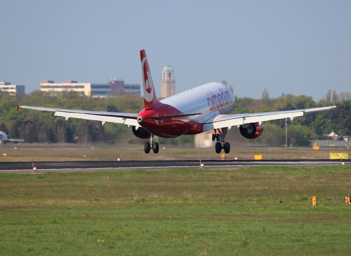 Air Berlin A 320-214 D-ABFT bei der Landung in Berlin-Tegel am 05.05.2013