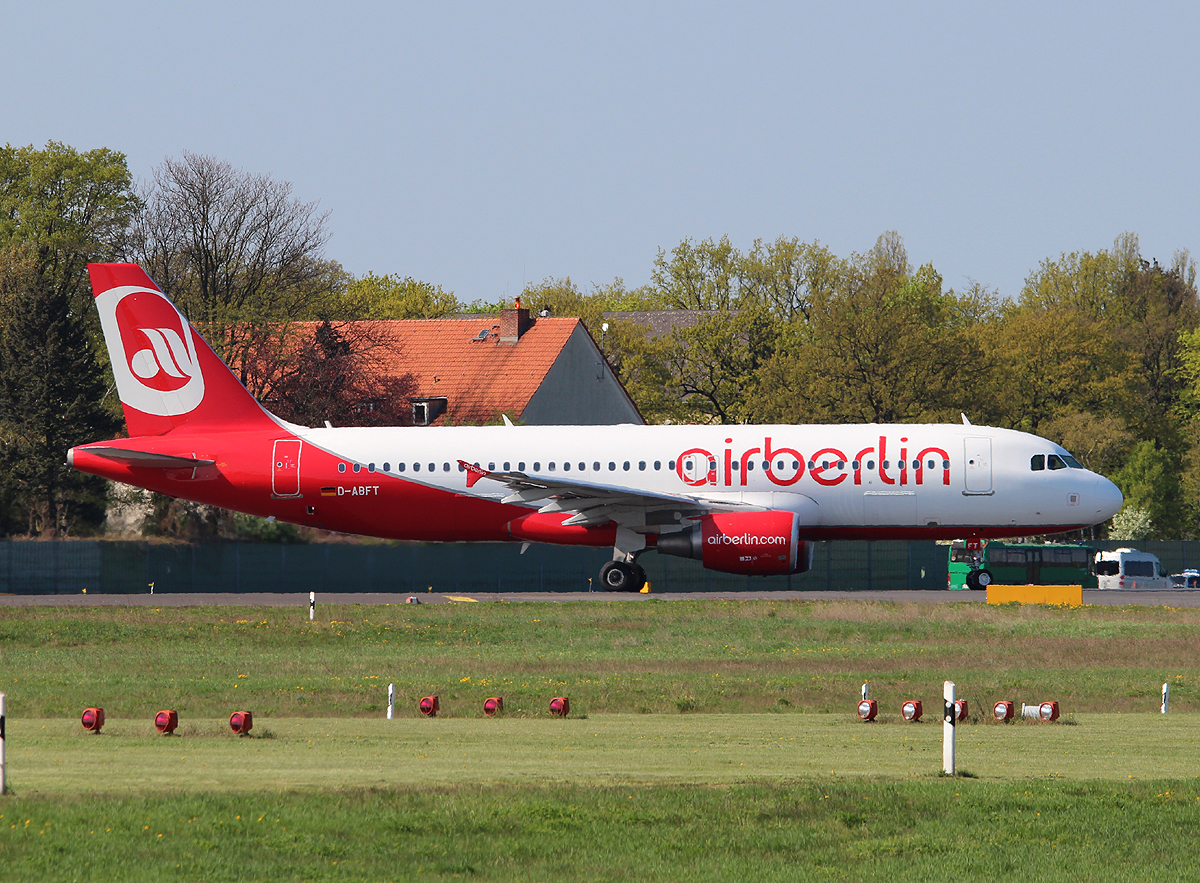 Air Berlin A 320-214 D-ABFT nach der Landung in Berlin-Tegel am 15.04.2012