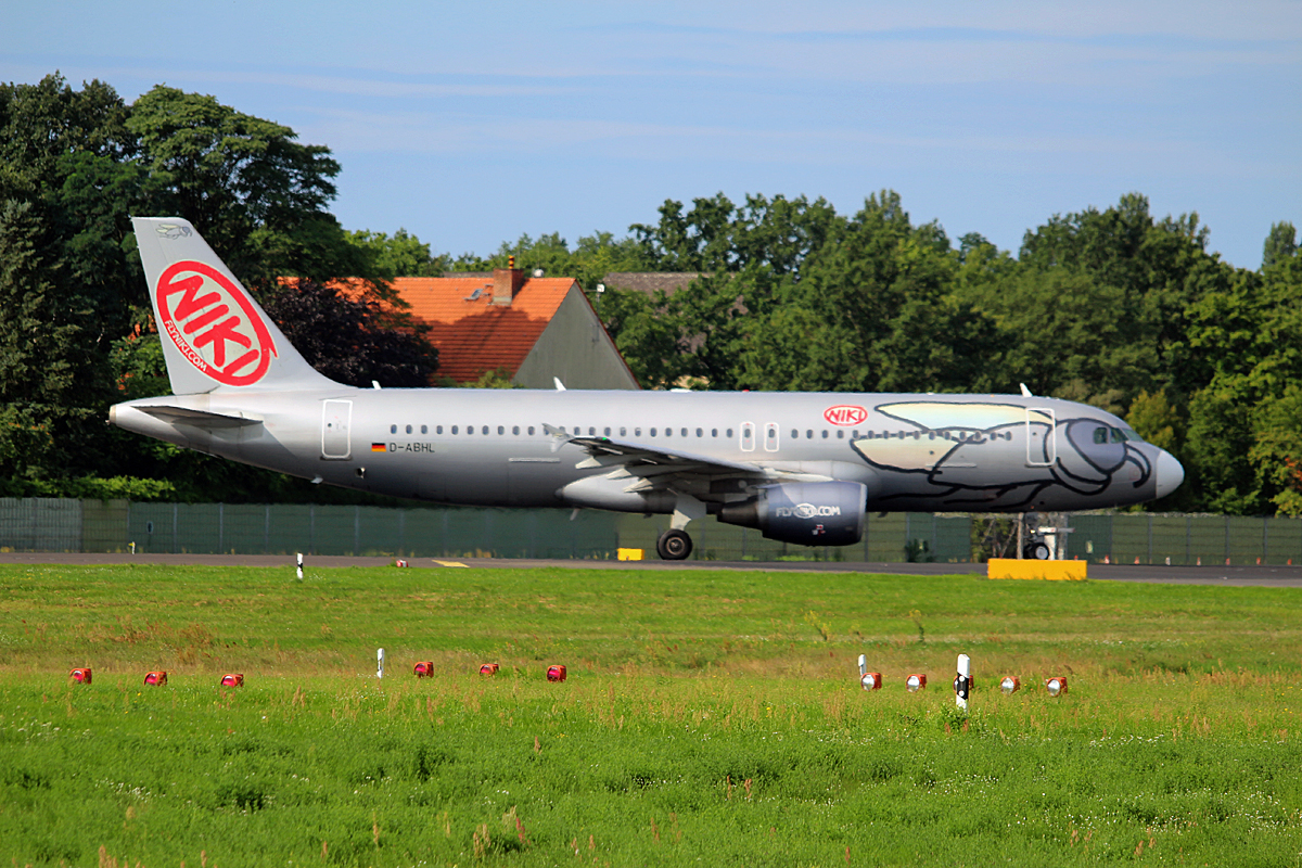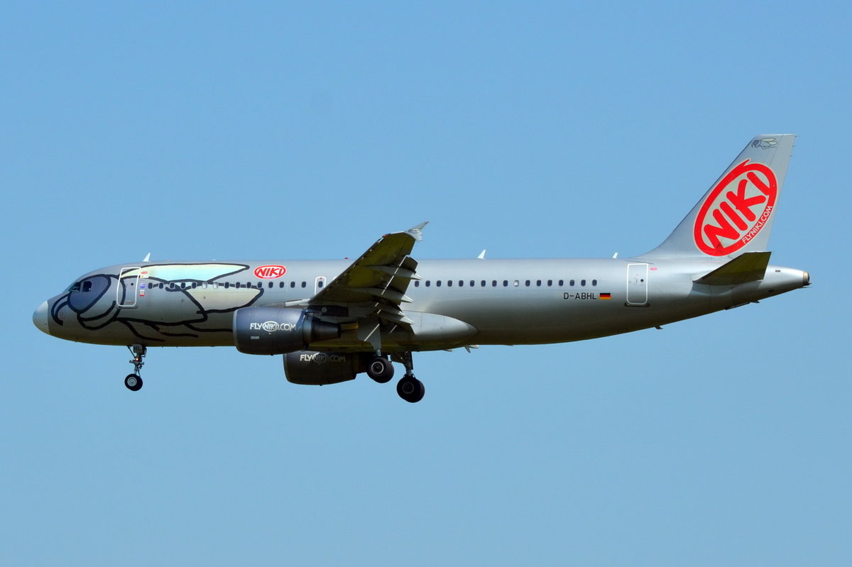 Niki Airbus A320 D-ABHL (fliegt für Air Berlin) vor der Landung in Hamburg Fuhlsbüttel am 06.07.17