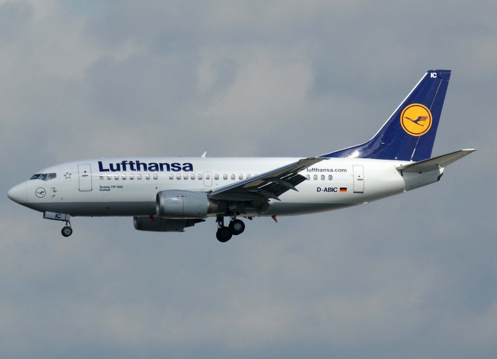 Lufthansa B 737-530 D-ABIC  Krefeld  bei der Landung in Frankfurt am Main am 16.08.2012