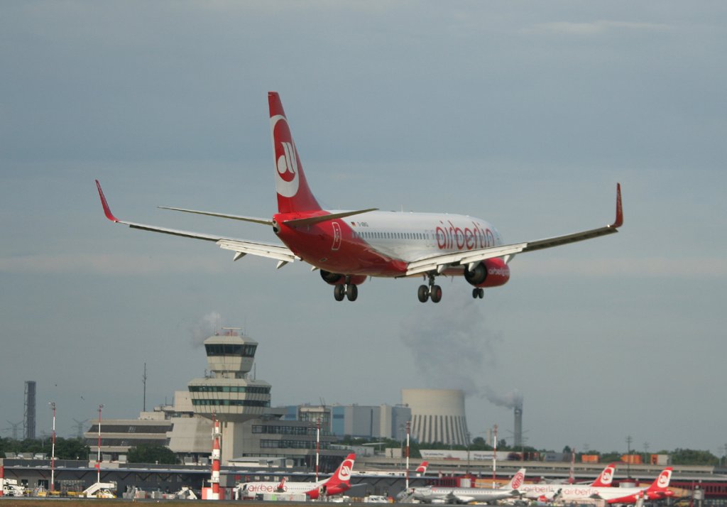Air Berlin B 737-86J D-ABKD kurz vor der Landung in Berlin-Tegel am 18.06.2011