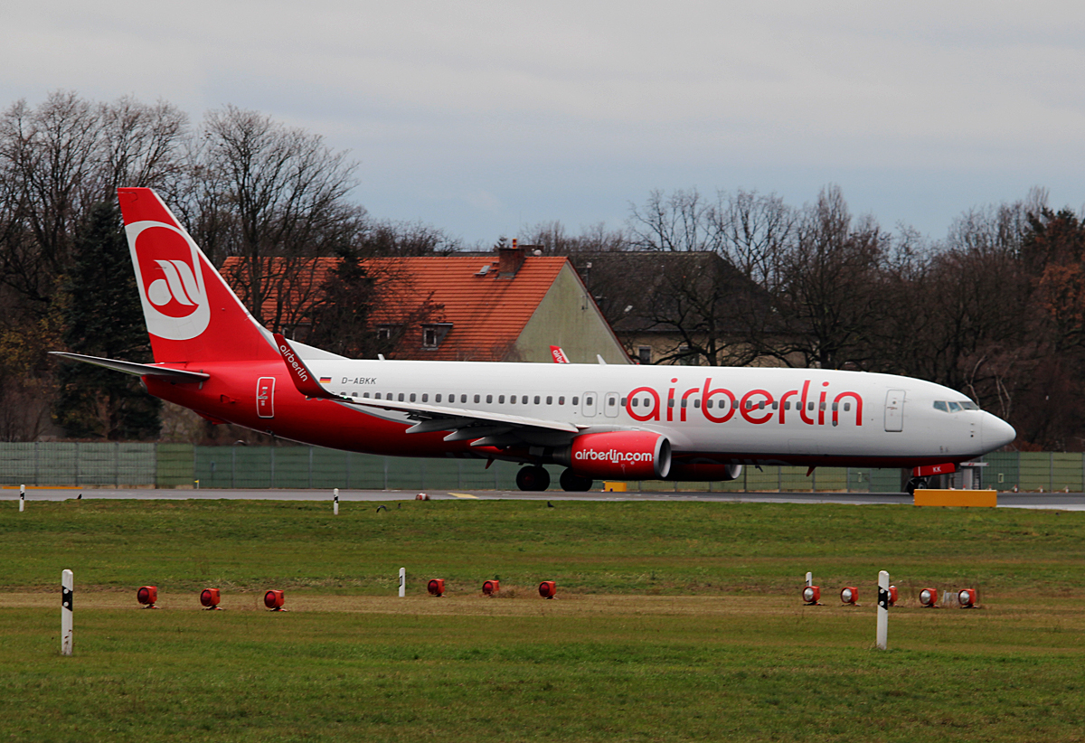 Air Berlin B 737-86J D-ABKK bei der Landung in Berlin-Tegel am 14.12.2014
