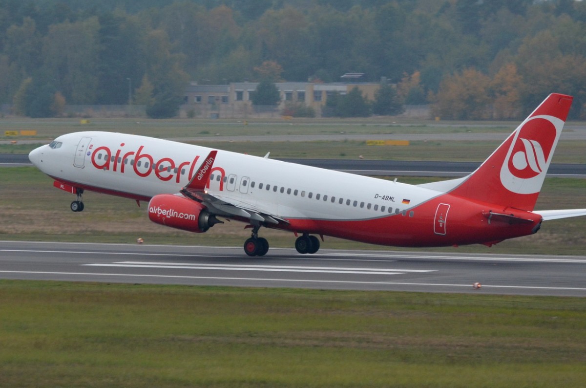 Air Berlin B 737-86J D-ABML bei der Ankunft in Berlin-Tegel am 29.11.2014