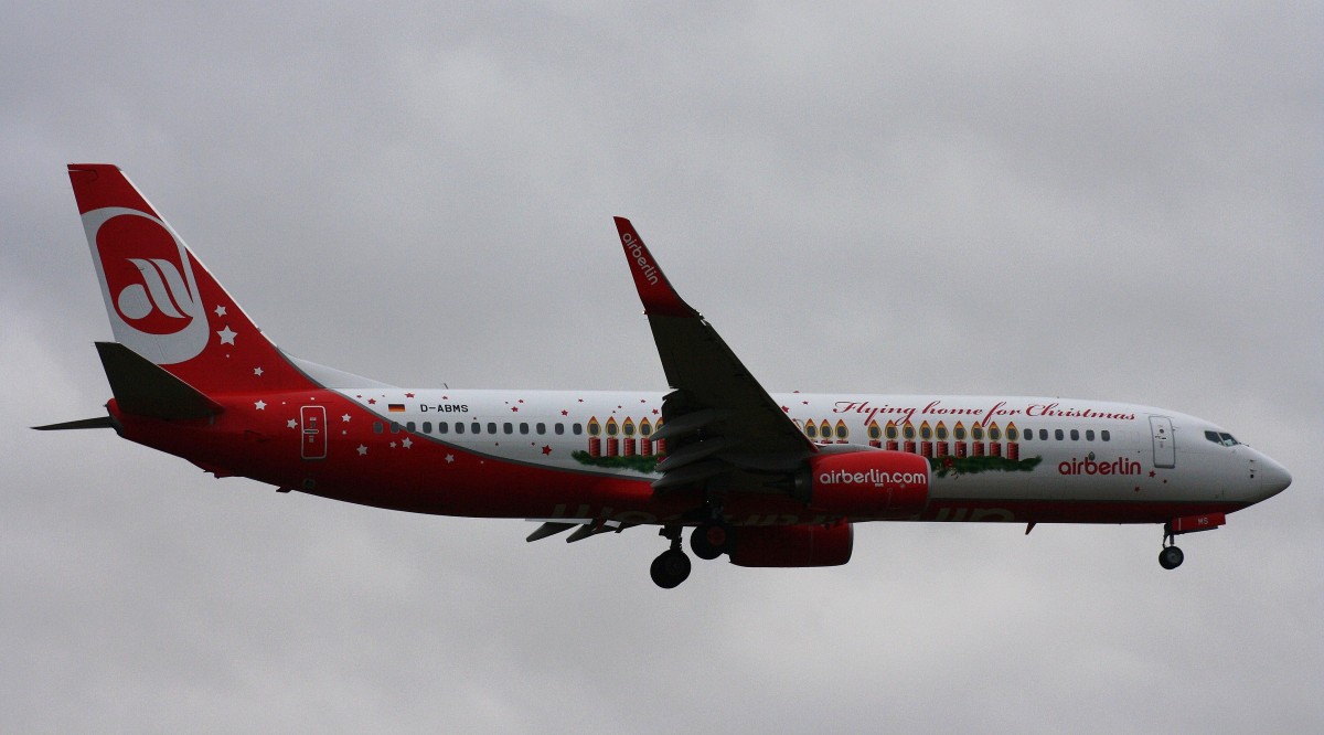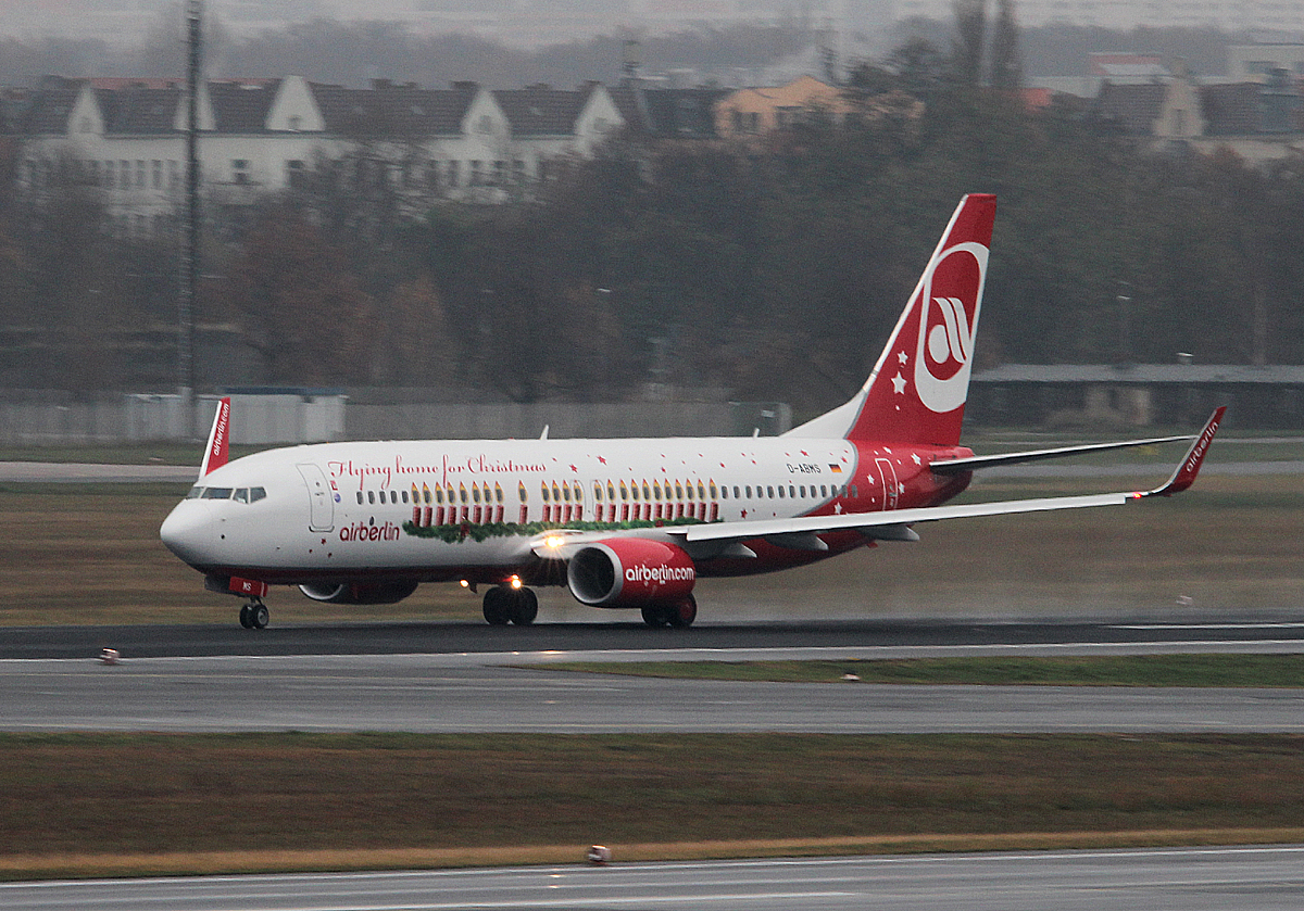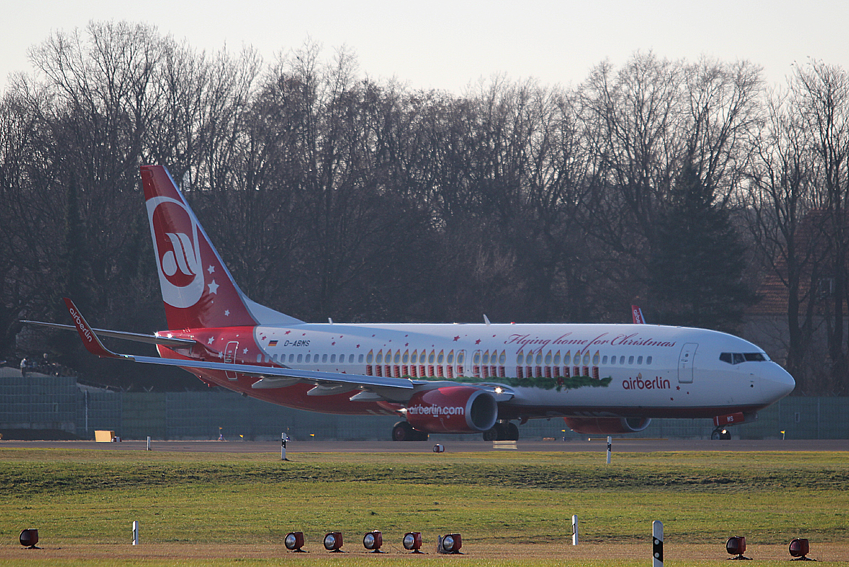 Air Berlin, D-ABMS, Boeing 737-800, 26. Dezember 2013, ZRH Zürich, Switzerland. Mit der  Flying home for Christmas  Bemahlung.