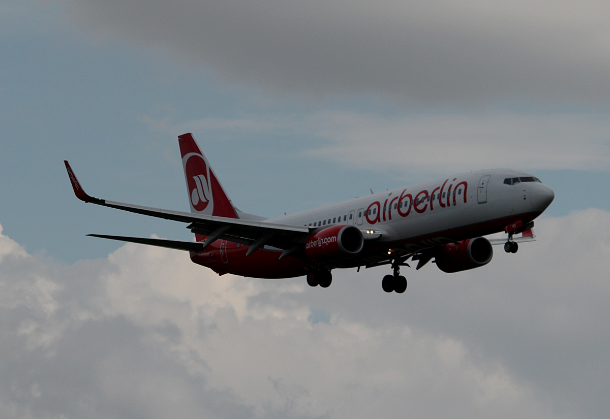 Air Berlin B 737-86J D-ABMS bei der Landung in Berlin-Tegel am 09.05.2014