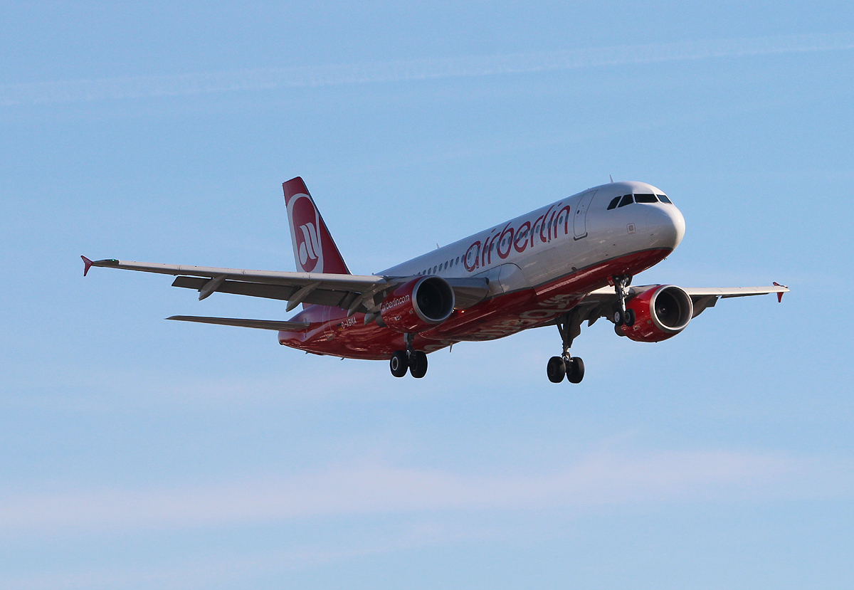Air Berlin A 320-214 D-ABNA bei der Landung in Berlin-Tegel am 31.10.2013