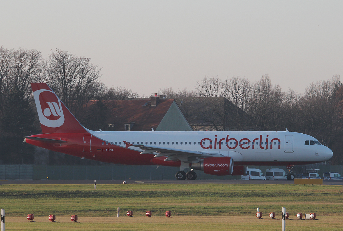 Air Berlin A 320-214 D-ABNA kurz vor dem Start in Berlin-Tegel am 30.12.2013