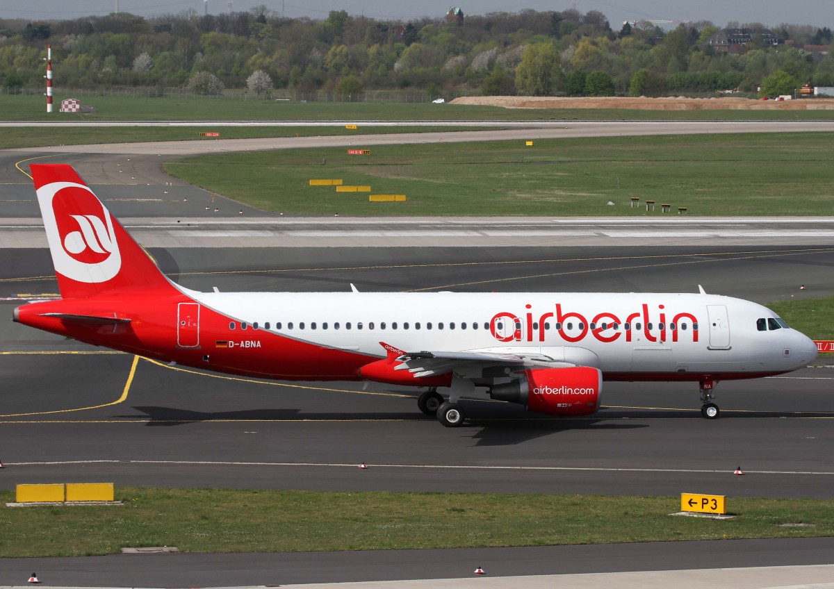 Air Berlin A 320-214 D-ABNA kurz vor dem Start in Berlin-Tegel am 05.05.2013