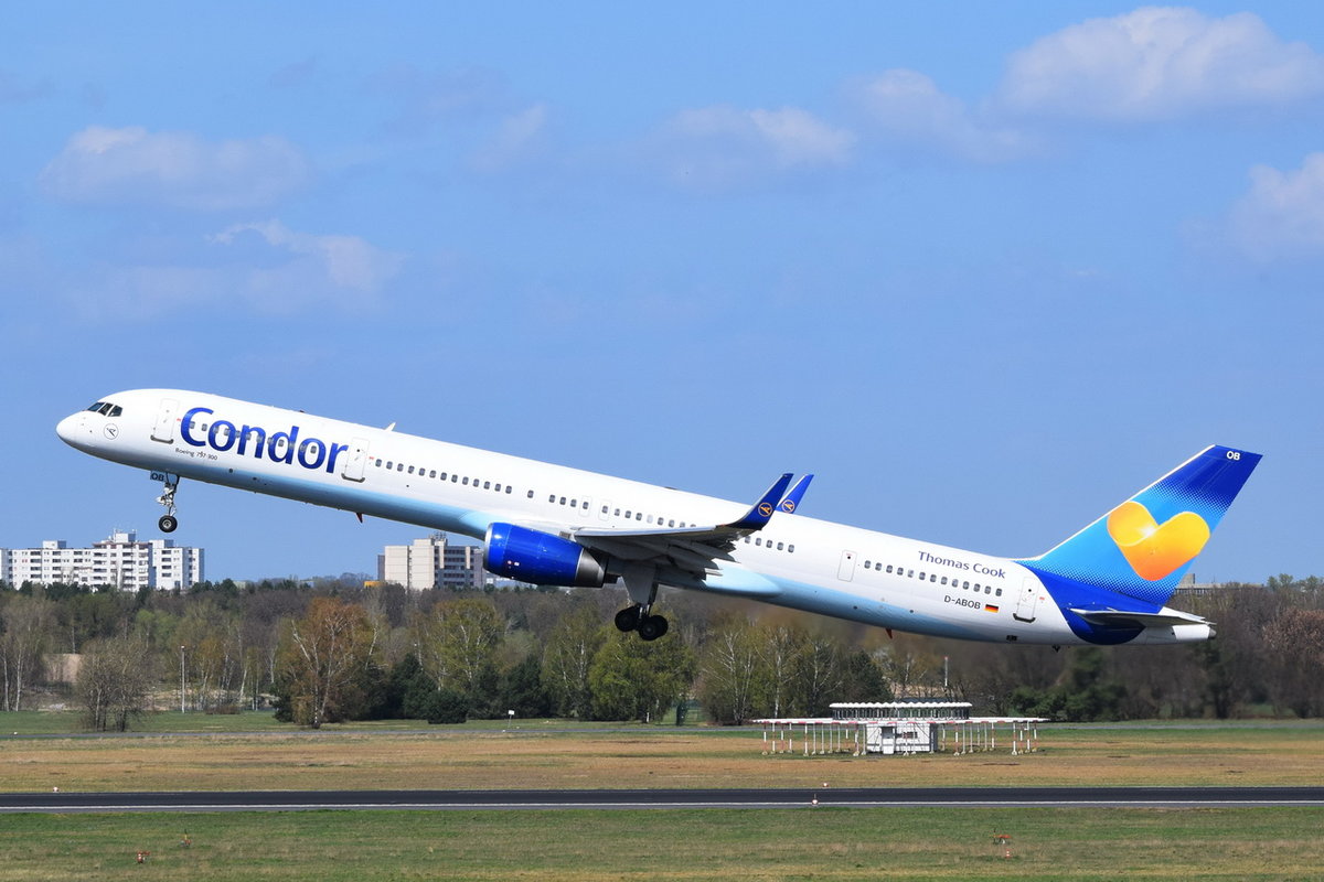 Condor B757-300 D-ABOB beim Takeoff auf 23L in DUS / EDDL / Düsseldorf am 20.08.2014