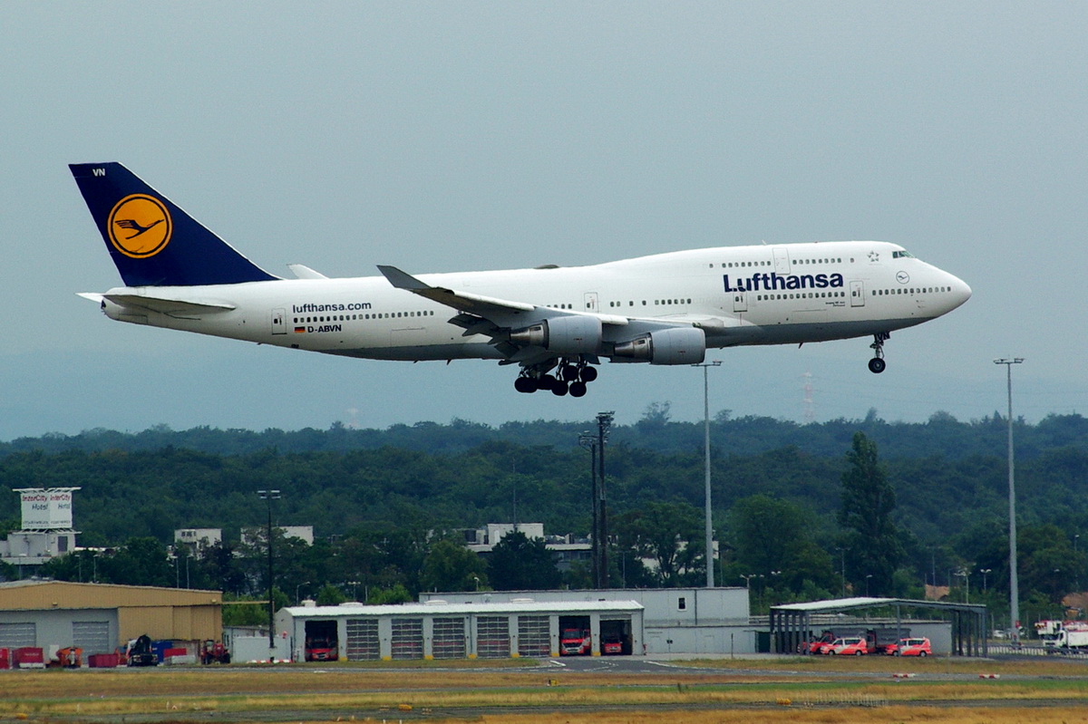 Lufthansa B 747-430 D-ABVN "Dortmumd" bei der Landung in Frankfurt am Main am 16.08.2012