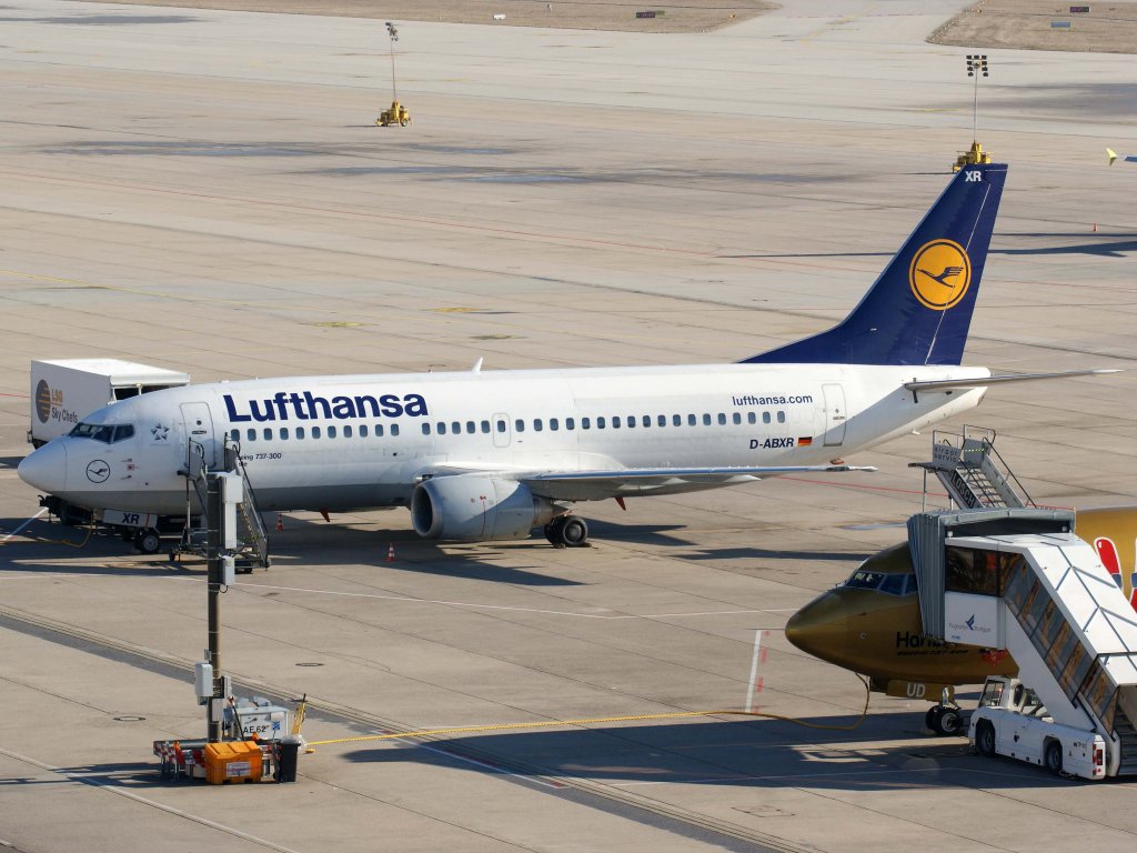 Lufthansa, B737-330, D-ABXR auf dem Hamburger flughafen. Aufgenommen am 27.03.10.