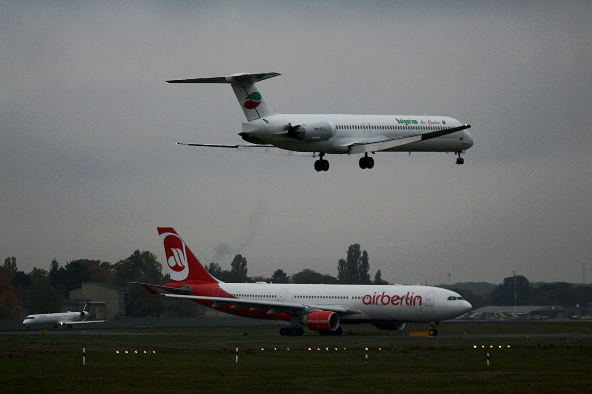 Bulgarian Air Charter, MD-82, LZ-LDU, Air Berlin, Airbus A 330-223, D-ALPI, Eurowings CRJ900NG, D-ACNW, TXL, 23.10.2016