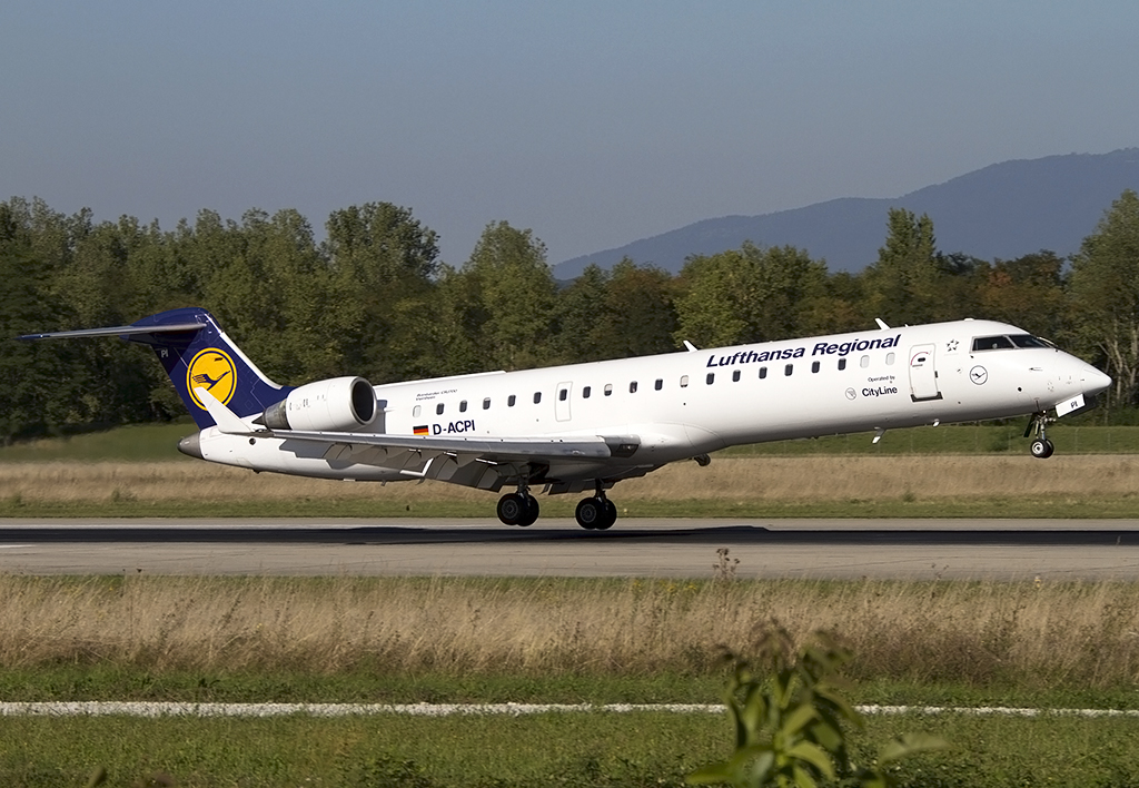 Lufthansa Regional(CityLine) Canadair Regjet CRJ701ER D-ACPI "Viernheim" bei der Landung in Frankfurt am Main am 16.08.2012