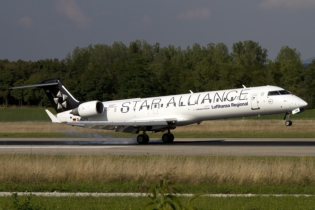 Lufthansa Regional(CityLine) Canadair Regjet CRJ701ER D-ACPS bei der Landung in Frankfurt am Main am 16.08.2012