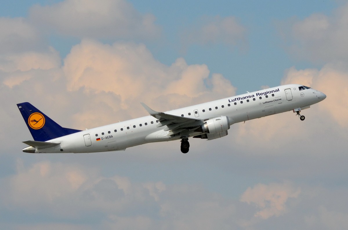 D-AEBA Lufthansa CityLine Embraer ERJ-195LR (ERJ-190-200 LR) am 10.09.2015 in München gestartet