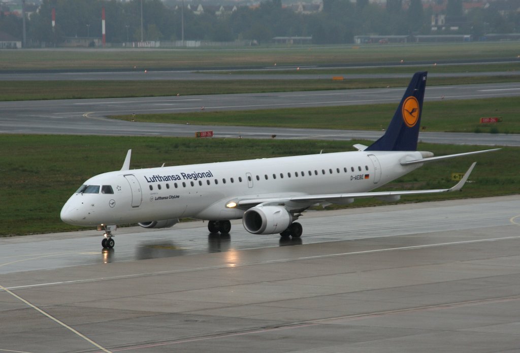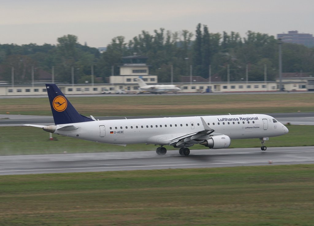 Lufthansa Regional(CityLine) Embaraer ERJ-195LR D-AEBE bei der Ankunft in Berlin-Tegel am 04.09.2010