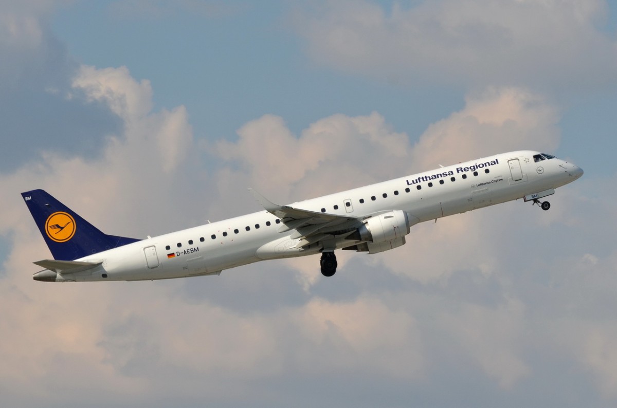 D-AEBM Lufthansa CityLine Embraer ERJ-195LR (ERJ-190-200 LR) in München am 10.09.2015 gestartet