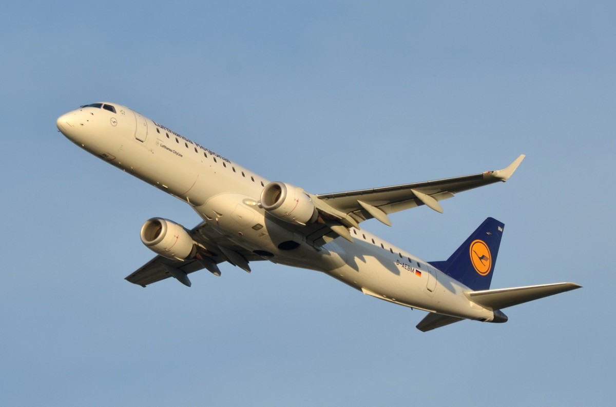 D-AEBM Lufthansa CityLine Embraer ERJ-195LR (ERJ-190-200 LR)  in München am 05.12.2015 gestartet