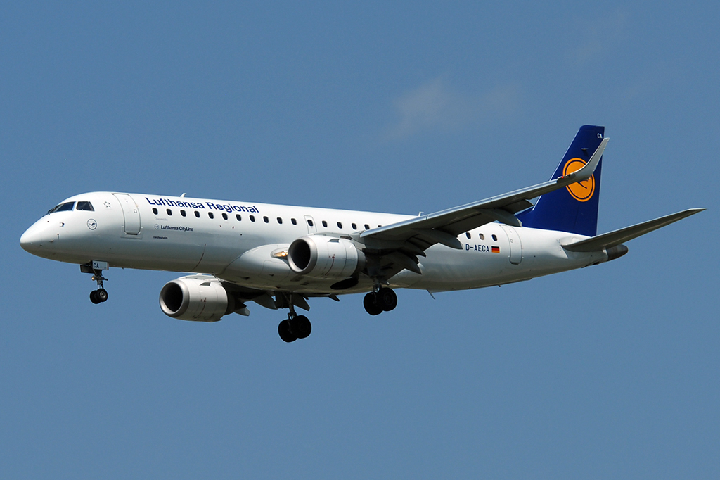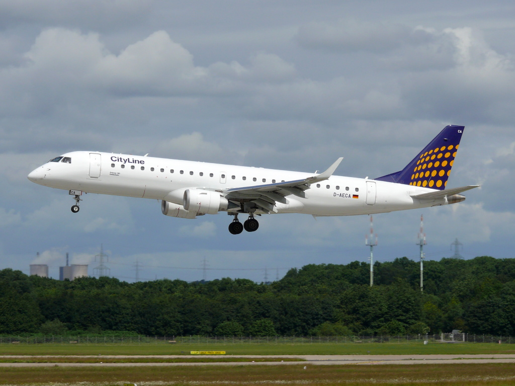 Lufthansa Regional (CityLine) ERJ-190-100LR D-AECA bei der Landung in Frankfurt am 09.06.2013