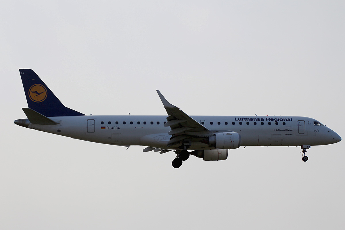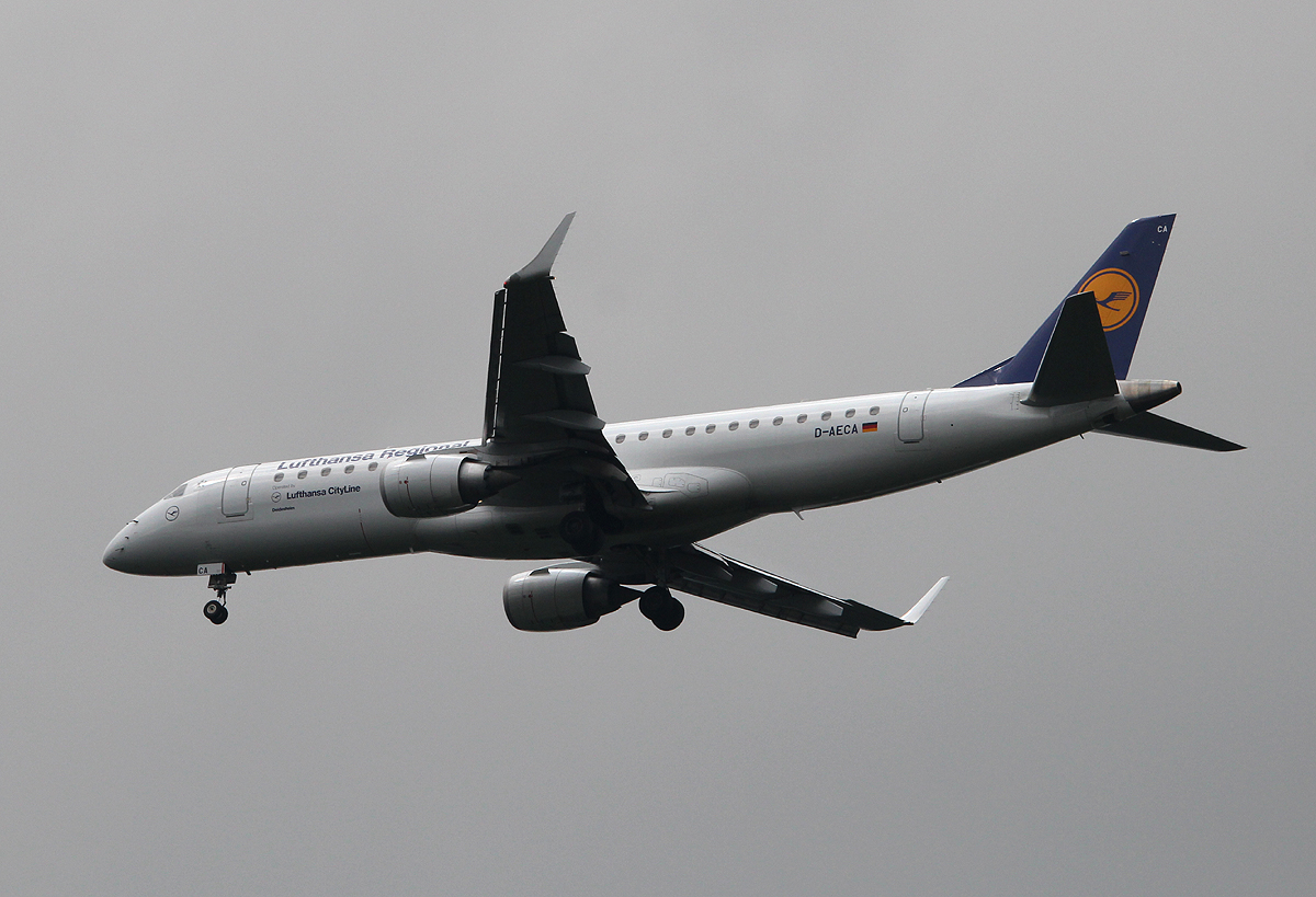 Lufthansa Regional(CityLine) ERJ-190-100LR D-AECA bei der Landung in Frankfurt am 11.06.2013