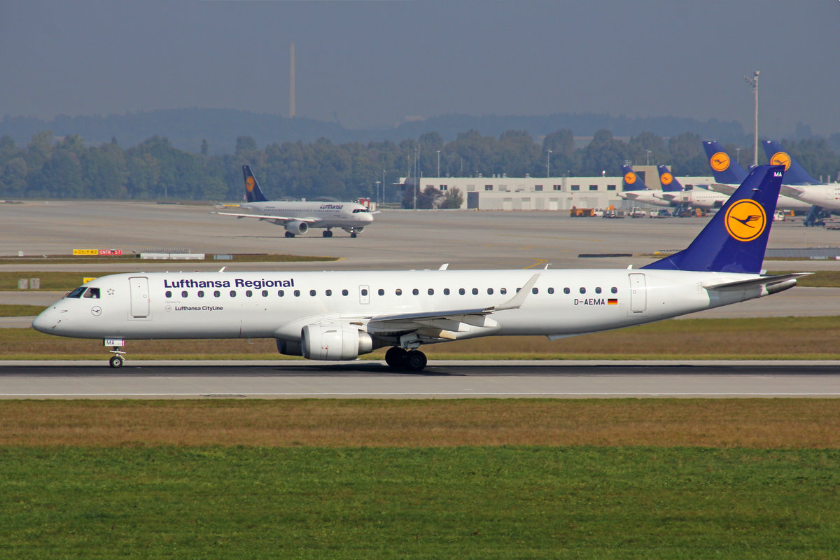 D-AEMA Lufthansa CityLine Embraer ERJ-195LR (ERJ-190-200 LR) gestartet in München am 13.10.2016