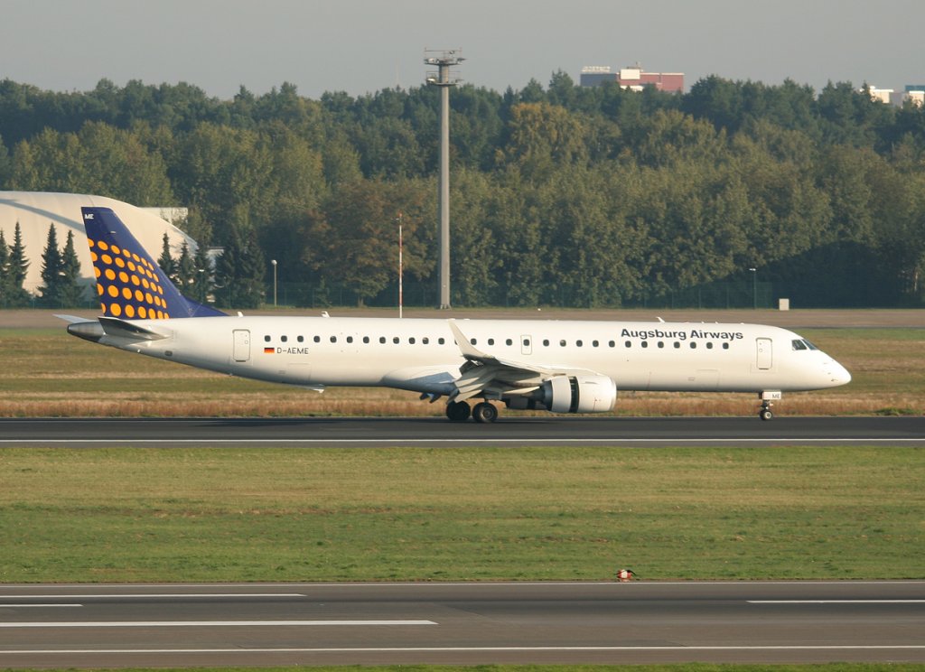 Lufthansa Regional (Augsburg Airways) Embraer ERJ-195LR D-AEME beim Start in Berlin-Tegel am 25.09.2011